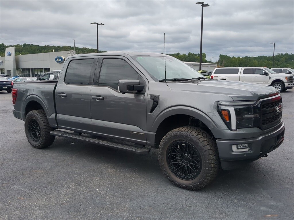 Carbonized Gray Metallic 2024 Ford F-150 Lariat 4WD Lariat 12" LCD Productivity Touchscreen, 360-Degree Camera, 5G WiFi Hotspot Telematics, Adaptive Cruise Control, Auto LED Headlights, Backup Camera, BlueCruise, Lane Keeping System, Lariat Package, Leather Seats, Off Road Package, Parking Sensors, Post Collision Braking, Power Mirror Package, Power Package, Power Sliding Rear Window, Pre Collision Assist w/ AEB, Reverse Brake Assist, Reverse Sensing, Skid Plate Package, Spray-In Bedliner, Wireless Charging Pad, **ROUGH COUNTRY LEVELING KIT**, **FUEL 20" ALLOYS w/ NITTO's**, **TINTED WINDOWS**, 4D SuperCrew, 3.5L PowerBoost Full-Hybrid V6, 10-Speed Automatic, 4WD, 4 Pickup Box Tie-Down Plates, 4x4 FX4 Off-Road Bodyside Decal, Bed Utility Package, Black Exterior Badging, Black Grille, Black Taillamp Bezels, Body-Color Front & Rear Bumpers, Body-Color Skull Caps & Door Handles, Dark Interior Appliques, Dual Exhaust w/Black Tips, Electronic Locking w/3.73 Axle Ratio, Equipment Group 501A Standard, FX4 Off-Road Package, Gray Box Side Decal, Hill Descent Control, Integrated Trailer Brake Controller, Lariat Black Appearance Package, Leather-Trimmed Bucket Seats, LED Box Lighting, Matte Black Tailgate F-150 Decal, Monotube Rear Shocks, Navigation system: Connected Navigation, Off-Road Tuned Front Shock Absorbers, Power Tailgate, Pro Access Tailgate, Rock Crawl Mode, Tow/Haul Package, Tray Style Floor Liner, Wheels: 20" Gloss Black Painted Aluminum.