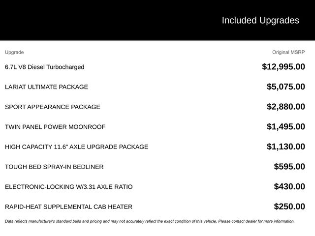 Powered by the legendary 6.7L High Output Power Stroke V8 Diesel engine, this F-250SD delivers unparalleled power and efficiency. Paired with the smooth-shifting 10-Speed Automatic transmission and robust 4WD system, you'll conquer any terrain with confidence. The Lariat Ultimate Package further enhances the driving experience, offering premium features like Wireless Charging, Intelligent Adaptive Cruise Control, and the renowned B&O Unleashed Sound System.