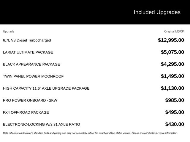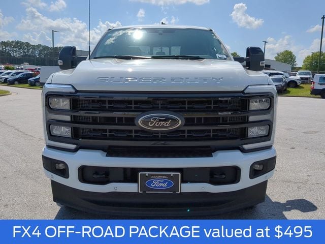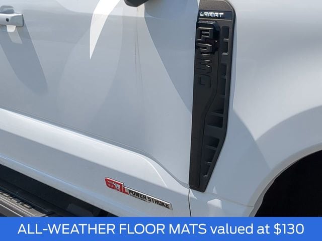 This 2024 Ford F-250SD Lariat in Oxford White features: **LOCAL TRADE**, LEATHER!, MOONROOF!, NAVIGATION!, 4D Crew Cab, 6.7L High Output Power Stroke V8 Diesel, 10-Speed Automatic, 4WD, 4-Way Adjustable Headrests, 6" Ebony Black Angular Running Boards, Black Appearance Package, Body Color Front & Rear Bumpers, Ebony Black Painted Front Grille Bars, Ebony Black Painted Mirror Caps, Front Sensing System, FX4 Off-Road Package, Head-Up Display, High Capacity 11.6" Axle Upgrade Package, Hill Descent Control, Intelligent Adaptive Cruise Control w/Stop-and-Go, Lariat Ultimate Package, Navigation system: Connected Navigation (includes complimentary 1-year trial), Off-Road Specifically Tuned Shock Absorbers, Power-Deployable Running Boards, Pro Trailer Backup Assist, Pro Trailer Hitch Assist, Radio: B&O Unleashed Sound System by Bang & Olufsen, Rear Wheel Well Liners (Pre-Installed), SiriusXM Radio w/360L, SYNC 4 w/Enhanced Voice Recognition, Tailgate Step & Handle, Tough Bed Spray-In Bedliner, Unique FX4 Off-Road Box Decal, Upfitter Switches (6), Wheels: 20" Machined & Ebony Black High Gloss, Wireless Charging Pad.