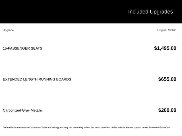 Designed with your comfort and convenience in mind, this Transit-350 offers seating for up to 15 passengers, extended length running boards, and a Carbonized Gray Metallic exterior. The powerful 3.5L V6 Flex Fuel engine, paired with a 10-speed automatic transmission, ensures a smooth and efficient driving experience.
