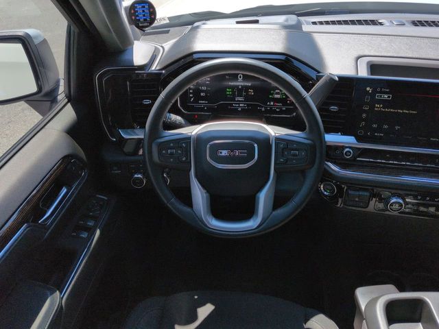 This 2024 GMC Sierra 1500 Elevation in Summit White features: 4D Crew Cab, 3.0L I6, 10-Speed Automatic, 4WD, **LOCAL TRADE**, 10-Way Power Driver Seat Adjuster w/Lumbar, 12.3" HD Color Driver Cluster, 120-Volt Bed Mounted Power Outlet, 120-Volt Interior Power Outlet, 13.4" HD Color Touchscreen, 2 Charge/Data USB Ports, 2 Type-C Charge-Only Rear USB Ports, 220 Amp Alternator, 4-Way Manual Passenger Seat Adjuster, 4-Wheel Disc Brakes, 6-Speaker Audio System Feature, ABS brakes, AM/FM radio: SiriusXM with 360L, Android Auto, Apple Carplay, Apple CarPlay/Android Auto, Auto Emergency Braking, Auto High-beam Headlights, Auto-Locking Rear Differential, Automatic Emergency Braking, Automatic temperature control, Backup Camera, Bluetooth w/ Audio Streaming, Body Color Header w/Gloss Black Mesh Grille Bars, Brake assist, Cloth Rear Seat w/Storage Package, Cold Weather Package, Color-Keyed Carpeting Floor Covering, Compass, Deep-Tinted Glass, Delay-off headlights, Dual Exhaust System, Electric Rear-Window Defogger, Electronic Stability Control, Engine Block Heater, Following Distance Indicator, Following Distance Indicator, Forward Collision Alert, Foward Collison Alert, Fox Suspension, Front dual zone A/C, Front fog lights, Front Frame-Mounted Black Recovery Hooks, Front Pedestrian Braking, Front Pedestrian Braking, Front Rubberized-Vinyl Floor Mats, Front wheel independent suspension, Fully automatic headlights, Genuine wood dashboard insert, GMC Connected Access Capable, HD Rear Vision Camera, Heated door mirrors, Heated Driver & Front Outboard Passenger Seating, Heated front seats, Heated steering wheel, Heavy-Duty Air Filter, High Capacity Suspension Package, Hill Descent Control, Hill Descent Control, Hitch Guidance, Illuminated entry, Integrated Trailer Brake Controller, IntelliBeam Automatic High Beam On/Off, Keyless Open & Start, Lane Departure Warning, Lane Keep Assist w/Lane Departure Warning, Lane Keeping System, LED Cargo Area Lighting, LED Foglights, Low tire pressure warning, Manual Tilt-Wheel & Telescoping Steering Column, Memory Package, Navigation System, Off Road Package, Off-Road Suspension, OnStar & GMC Connected Services Capable, Outside temperature display, Overhead console, Panic alarm, Power Door Locks, Power door mirrors, Power Front Windows w/Driver Express Up/Down, Power Front Windows w/Passenger Express Down, Power Mirror Package, Power Package, Power Rear Windows w/Express Down, Preferred Equipment Group 3SB, Preferred Equipment Package, Premium audio system: GMC Infotainment System, Push Button Start, Push Button Start, Radio data system, Radio: Premium GMC Infotainment Audio System, Rear Rubberized-Vinyl Floor Mats, Rear seat center armrest, Rear step bumper, Rear Wheelhouse Liners, Remote keyless entry, Remote Start, Remote Vehicle Starter System, Safety Package, Security system, SiriusXM w/360L, Skid Plate Package, Speed control, Speed-sensing steering, Split folding rear seat, Spray-On Pickup Bedliner w/GMC Logo, Standard Tailgate, Steering Wheel Audio Controls, Steering wheel mounted audio controls, Telescoping steering wheel, Theft Deterrent System (Unauthorized Entry), Tilt steering wheel, Tow Package, Traction control, Trailer Package, Trailering Package, Trip computer, Variably intermittent wipers, Wheels: 20" x 9" High Gloss Black Painted Aluminum, Wi-Fi Hotspot Capable, Wireless Apple CarPlay/Wireless Android Auto, X31 Hard Badge, X31 Off-Road Package.