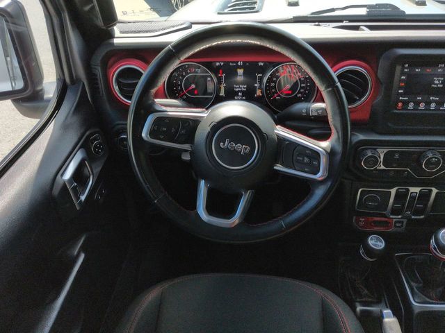 This 2020 Jeep Wrangler Unlimited Rubicon in Billet Silver Metallic Clearcoat features: 4D Sport Utility, 3.6L V6 24V VVT, 6-Speed Manual, 4WD, **LOCAL TRADE**, 4-Wheel Disc Brakes, 7" Color Touchscreen, 8 Speakers, ABS brakes, AM/FM radio: SiriusXM, Android Auto, Apple Carplay, Apple CarPlay/Android Auto, Automatic temperature control, Backup Camera, Bluetooth w/ Audio Streaming, Brake assist, Compass, Dana M210 Wide Axles, Delay-off headlights, Electronic Stability Control, Front Bucket Seats, Front Center Armrest w/Storage, Front dual zone A/C, Front fog lights, Fully automatic headlights, Garage door transmitter, Heated door mirrors, Hill Start Assist, Illuminated entry, Integrated roll-over protection, Leather steering wheel, Low tire pressure warning, Off Road Package, Outside temperature display, ParkView Rear Back-Up Camera, Performance Handling Package, Performance Suspension, Power door mirrors, Power Mirror Package, Power Package, Power steering, Power windows, Preferred Equipment Package, Premium Cloth Low-Back Bucket Seats, Quick Order Package 23R, Radio data system, Radio: Uconnect 4 w/7" Display, Remote keyless entry, Skid Plate Package, Speed control, Split folding rear seat, Steering wheel mounted audio controls, Stop-Start Dual Battery System, Telescoping steering wheel, Tilt steering wheel, Traction control, Trip computer, Variably intermittent wipers, Wheels: 17" x 7.5" Machined w/Black Pockets.