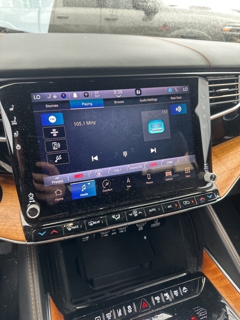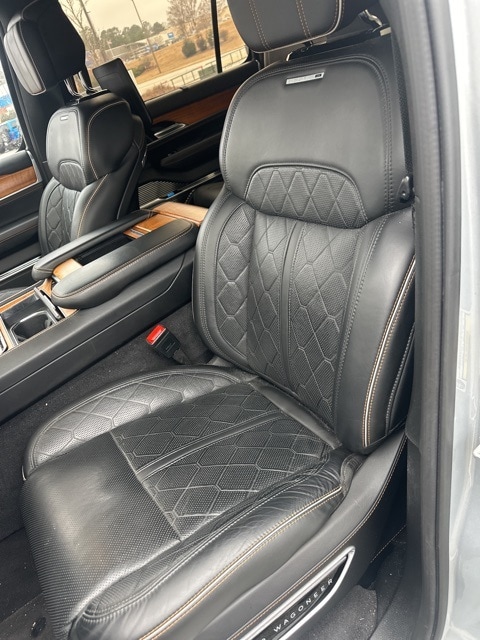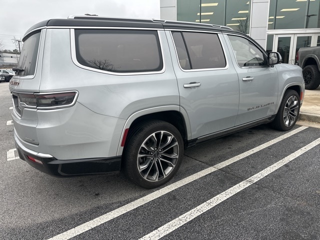 This 2022 Jeep Grand Wagoneer Series III in Silver Zynith features: 4D Sport Utility, 6.4L V8, 8-Speed Automatic, 4WD, 12" LCD Productivity Touchscreen, 360-Degree Camera, 3rd Row Seating, 3rd row seats: bench, 4-Wheel Disc Brakes, 4G WiFi Hotspot Telematics, ABS brakes, Adaptive Ride Package, Adaptive Suspension, Adjustable pedals, AM/FM radio: SiriusXM with 360L, Amazon Fire TV Built-In, Android Auto, Apple Carplay, Audio memory, Auto High-beam Headlights, Auto LED Headlights, Auto-dimming door mirrors, Auto-dimming Rear-View mirror, Auto-leveling suspension, Automatic temperature control, Backup Camera, Bluetooth w/ Audio Streaming, Brake assist, Cold Weather Package, Compass, Delay-off headlights, Driver Attention Warning, DVD Entertainment Package, Electronic Stability Control, Four wheel independent suspension, Front Center Armrest w/Storage, Front dual zone A/C, Front fog lights, Front Pedestrian Braking, Full Speed Auto Collision Warning Plus, Fully automatic headlights, Garage door transmitter, Genuine wood console insert, Genuine wood dashboard insert, Genuine wood door panel insert, Heads-Up Display, Heated door mirrors, Heated front seats, Heated rear seats, Heated steering wheel, Illuminated entry, Intersection Assist, Lane Keeping System, Leather Seats, Leather steering wheel, LED Foglights, LED Projector Headlights, Low tire pressure warning, Memory seat, Multi Zone Climate Control, Multimedia Package, Navigation System, Night vision lights, Night Vision w/ Pedestrian and Animal Detection, Outside temperature display, Overhead console, Panic alarm, Panoramic Sunroof/Moonroof, Parking Sensors, Pedal memory, Power door mirrors, Power Liftgate, Power Mirror Package, Power Package, Power passenger seat, Power Running Boards, Preferred Equipment Package, Premium Audio Package, Premium Leather Trimmed Bucket Seats, Premium Sound Package, Push Button Start, Quick Order Package 23W, Radio data system, Radio: Uconnect 5 Nav w/12.0" Display, Rain sensing wipers, Rear air conditioning, Rear Climate Package, Rear Cross Traffic Alert, Rear dual zone A/C, Rear seat center armrest, Rear Seat Video Group 1, Rear window wiper, Reclining 3rd row seat, Remote keyless entry, Remote Start, Reverse Brake Assist, Reverse Sensing, Roof rack, Safety Package, Seatback Video Screens, Security system, Speed-sensing steering, Speed-Sensitive Wipers, Steering wheel memory, Steering wheel mounted audio controls, Telescoping steering wheel, Third Row Seating, Tilt steering wheel, Traction control, Traffic Sign Recognition, Trip computer, Turn signal indicator mirrors, Two Tone Paint Group, Ventilated front seats, Ventilated rear seats, Video USB Port, Wheels: 22" x 9.0" Premium 4 Aluminum.