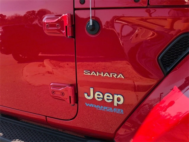 This 2022 Jeep Wrangler Unlimited Sahara 4xe in Firecracker Red Clearcoat features: 4D Sport Utility, 2.0L I4 DOHC, 8-Speed Automatic, 4WD, 4-Wheel Disc Brakes, 9 Speakers, ABS brakes, AM/FM radio, Android Auto, Apple Carplay, Apple CarPlay/Android Auto, Auto LED Headlights, Auto-dimming Rear-View mirror, Automatic temperature control, Backup Camera, Blind Spot & Cross Path Detection, Blind Spot Monitoring, Bluetooth w/ Audio Streaming, Brake assist, Compass, Delay-off headlights, Electronic Stability Control, Emergency communication system: SiriusXM Guardian, Front Bucket Seats, Front Center Armrest w/Storage, Front dual zone A/C, Front fog lights, Fully automatic headlights, Garage door transmitter, Heated door mirrors, Hill Start Assist, Illuminated entry, Integrated roll-over protection, Leather Seats, Leather Shift Knob, Leather steering wheel, Low tire pressure warning, Navigation System, Outside temperature display, Panic alarm, Parking Sensors, ParkSense Rear Park Assist System, ParkView Rear Back-Up Camera, Power door mirrors, Power Mirror Package, Power Package, Power steering, Power Top Quarter Window Storage Bag, Power windows, Premium McKinley Trimmed Seats, Quick Order Package 29P, Radio data system, Radio: Uconnect 4C Nav w/8.4" Display, Rear Climate Package, Rear Cross Traffic Alert, Rear seat center armrest, Remote keyless entry, Removable Rear Quarter Windows, Reverse Brake Assist, Reverse Sensing, Safety Group, Safety Package, Security system, Sky 1-Touch Power Top, Speed control, Split folding rear seat, Sport Suspension, Steering wheel mounted audio controls, Telescoping steering wheel, Tilt steering wheel, Traction control, Trip computer, Variably intermittent wipers, Wheels: 20" x 8" Fully Painted Aluminum.