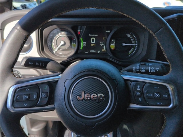 This 2024 Jeep Wrangler Sahara 4xe in Anvil Clear Coat features: 4D Sport Utility, 2.0L I4 DOHC, 4WD, 12.3" Touchscreen Display, 3rd Generation Heavy-Duty Dana 44 Axles, 4-Wheel Disc Brakes, 4G LTE Wi-Fi Hot Spot, 4G WiFi Hotspot Telematics, ABS brakes, Adaptive Cruise Control, Android Auto, Apple Carplay, Apple CarPlay/Android Auto, Auto LED Headlights, Automatic temperature control, Backup Camera, Bluetooth w/ Audio Streaming, Body Color 3-Piece Hard Top, Brake assist, Cold Weather Package, Compass, Delay-off headlights, Electronic Stability Control, Emergency communication system: Jeep Connect, Freedom Panel Storage Bag, Front Center Armrest w/Storage, Front dual zone A/C, Front fog lights, Front Pedestrian Braking, Full Speed Auto Collision Warning Plus, Fully automatic headlights, HD Radio, Heated door mirrors, Heated front seats, Heated steering wheel, Illuminated entry, Integrated Center Stack Radio, Integrated roll-over protection, Integrated Voice Command w/Bluetooth, LED Foglights, Low tire pressure warning, No Soft Top, Outside temperature display, Panic alarm, Power door mirrors, Power Mirror Package, Power Package, Power steering, Power windows, Push Button Start, Quick Order Package 29P Sahara, Radio data system, Radio: Uconnect 5 w/12.3" Display, Rear seat center armrest, Rear Window Defroster, Rear Window Wiper/Washer, Remote keyless entry, Remote Start, Security system, Split folding rear seat, Sport Package, Sport Suspension, Steering wheel mounted audio controls, Telescoping steering wheel, Tilt steering wheel, Traction control, Trip computer, Wheels: 20" x 8" Painted Black Aluminum.
