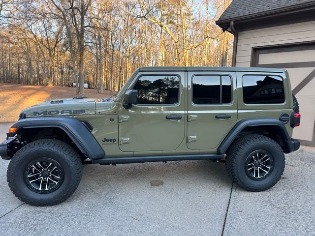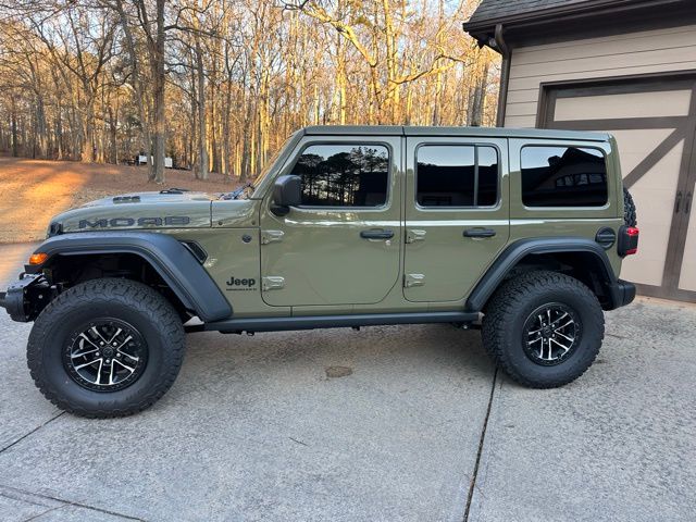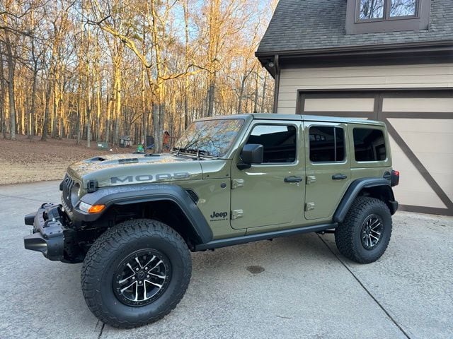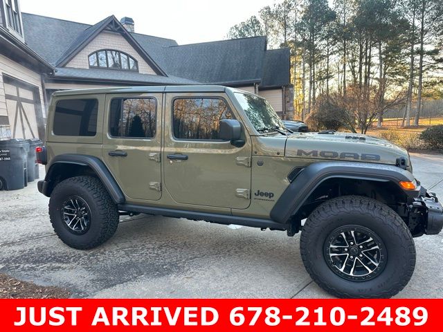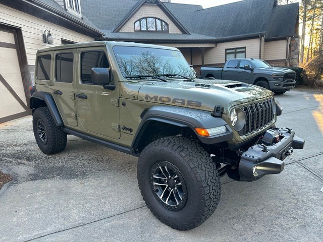 This 2026 Jeep Wrangler Moab in 41 features: 4D Sport Utility, SRT HEMI 6.4L V8 MDS, 8-Speed Automatic, 4WD, 12.3" Touchscreen Display, 35" Tire Rubicon 392 Suspension, 3rd Generation Heavy-Duty Dana 44 Front Axle, 4-Wheel Disc Brakes, 4G LTE Wi-Fi Hot Spot, 4G WiFi Hotspot Telematics, 9 Speakers, ABS brakes, Active Cruise Control, Adaptive Cruise Control, Alloy wheels, Android Auto, Apple Carplay, Apple CarPlay/Android Auto, Auto LED Headlights, Auto-dimming Rear-View mirror, Automatic temperature control, Aux Battery, Auxiliary Switches, Backup Camera, Blind Spot Monitoring, Bluetooth w/ Audio Streaming, Body Color 3-Piece Hard Top, Brake assist, Class II Receiver Hitch, Cold Weather Package, Compass, Dana M220 Wide Full-Floating Rear Axle, Delay-off headlights, E-Locker Front Axle, Electronic Stability Control, Emergency communication system: Jeep Connect, Freedom Panel Storage Bag, Front Center Armrest w/Storage, Front Disconnecting Stabilizer Bar, Front dual zone A/C, Front fog lights, Front Pedestrian Braking, Full Speed Auto Collision Warning Plus, Fully automatic headlights, Garage door transmitter, Heated door mirrors, Heated front seats, Heated steering wheel, Illuminated entry, Integrated Center Stack Radio, Integrated Off-Road Camera, Integrated roll-over protection, Leather Seats, Leather Shift Knob, Leather steering wheel, LED Foglights, Low tire pressure warning, Nappa Leather Seats, Navigation System, Off Road Package, Outside temperature display, Panic alarm, Parking Sensors, ParkView Rear Back-Up Camera, Power door mirrors, Power Mirror Package, Power Package, Power passenger seat, Preferred Equipment Package, Quick Order Package 27X Moab, Radio data system, Rear Cross Traffic Alert, Rear seat center armrest, Rear Window Defroster, Rear Window Wiper/Washer, Remote keyless entry, Reverse Brake Assist, Reverse Sensing, Safety Package, Security system, Skid Plate Package, Speed control, Split folding rear seat, Sport steering wheel, Steering wheel mounted audio controls, Stop-Start Dual Battery System, Telescoping steering wheel, Tilt steering wheel, Traction control, Trip computer, Warn Winch.