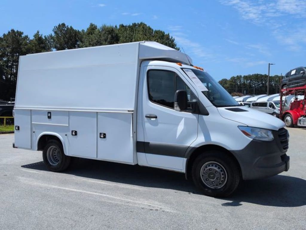 This 2021 Mercedes-Benz Sprinter 3500 Cab Chassis 144 WB in Arctic White features: 2.0L I4, 7G-TRONIC 7-Speed Automatic, RWD, **LOCAL TRADE**, 2 Additional Master Keys, 4-Wheel Disc Brakes, ABS brakes, Active Distance Assist DISTRONIC®, Active Lane Keeping Assist, Air Conditioning, Attention Assist, Brake assist, Driver Convenience Package, Driver Seat Base 12V Power Outlet, Driver's Seat Mounted Armrest, Electronic Stability Control, Emergency communication system: eCall Emergency System, Front wheel independent suspension, Fully automatic headlights, Heated door mirrors, Hill Start Assist, Hinged Lid for Storage Compartment, Illuminated entry, Instrument Cluster w/Color Display, Lane Keeping System, Leather Steering Wheel, Maturin Fabric Upholstery, Outside temperature display, Overhead console, Parking Sensors, Passenger seat mounted armrest, Power door mirrors, Power Mirror Package, Power Package, Power steering, Power windows, Premium Package, Radio: MBUX Multimedia System w/7" Touchscreen, Radio: Standard, Rain Sensor, Remote keyless entry, Reverse Brake Assist, Reverse Sensing, Side-Wind Stabilization, Speed control, Steering wheel mounted audio controls, Tilt steering wheel, Tow Package, Traction control, Trailer Package, Wet Wiper System.