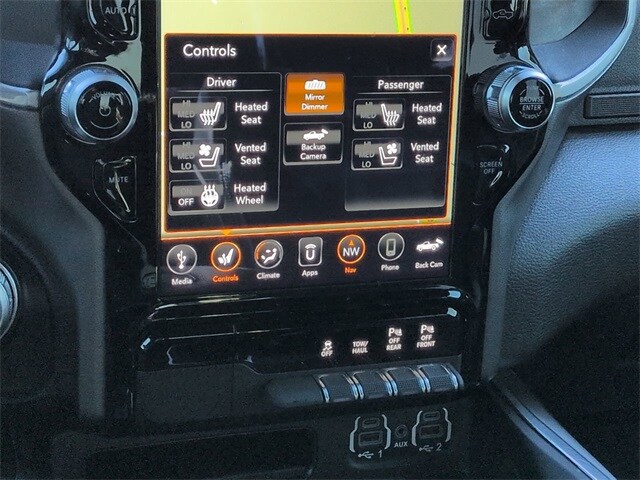 This 2021 Ram 1500 Laramie in Bright White Clearcoat features: 4D Crew Cab, HEMI 5.7L V8 Multi Displacement VVT, 8-Speed Automatic, 4WD, #1 Seat Foam Cushion, 10 Speakers, 12" LCD Productivity Touchscreen, 12" Touchscreen Display, 3 Rear Seat Head Restraints, 33 Gallon Fuel Tank, 4 Way Front Headrests, 4-Wheel Disc Brakes, 48V Belt Starter Generator, 4G LTE Wi-Fi Hot Spot, 4G WiFi Hotspot Telematics, 5-Year SiriusXM Travel Link Service, ABS brakes, Accent Color Premium Power Mirrors, Adjustable pedals, AM/FM radio: SiriusXM, Anti-Spin Differential Rear Axle, Apple CarPlay/Android Auto, Audio memory, Auto Dimming Exterior Passenger Mirror, Auto High Beam Headlamp Control, Auto-dimming Rear-View mirror, Automatic temperature control, Backup Camera, Bed Utility Group, Black Exterior Truck Badging, Black Headlamp Bezels, Black Interior Accents, Black Painted Exterior Mirrors Caps, Body Color Door Handles, Body Color Front Bumper, Body Color Rear Bumper w/Step Pads, Brake assist, Bucket Seats, Center Console Parts Module, Cold Weather Package, Compass, Delay-off headlights, Disassociated Touchscreen Display, Dome Dual LED Reading Lamp, Driver Seat Memory, Dual Exhaust w/Black Tips, Dual-Pane Panoramic Sunroof, Electronic Stability Control, Foam Bottle Insert (Door Trim Panel), For More Info, Call 800-643-2112, Front & Rear Park Assist, Front Center Armrest w/Storage, Front dual zone A/C, Front fog lights, Front Pedestrian Braking, Front Seat Back Map Pockets, Front wheel independent suspension, Full Length Upgraded Floor Console, Full Speed Auto Collision Warning Plus, Fully automatic headlights, Garage door transmitter, Google Android Auto, GPS Antenna Input, GPS Navigation, Grille Surround 3 Black Texture 2 Black, harman/kardon 19 Speaker Premium Sound, HD Radio, Heated door mirrors, Heated Front Seats, Heated Second Row Seats, Heated Steering Wheel, Illuminated entry, Integrated Center Stack Radio, Integrated Voice Command w/Bluetooth, Laramie Level B Equipment Group, Leather steering wheel, Leather Trim 40/20/40 Bench Seat, Leather Trimmed Bucket Seats, LED Dome/Reading Lamp, Low tire pressure warning, Memory Package, Memory seat, MOPAR 4 Adjustable Cargo Tie-Down Hooks, Mopar Black Tubular Side Steps, MOPAR Deployable Bed Step, MOPAR Spray In Bedliner, Multimedia Package, Navigation System, Night Edition, Outside temperature display, Overhead console, Panoramic Sunroof/Moonroof, Parking Sensors, ParkSense Front/Rear Park Assist w/Stop, ParkView Rear Back-Up Camera, Pedal memory, Pick-Up Box Lighting, Power 4-Way Driver Lumbar Adjust, Power 4-Way Passenger Lumbar Adjust, Power 8-Way Driver & Passenger Seats, Power door mirrors, Power Mirror Package, Power Package, Power windows, Preferred Equipment Package, Premium Audio Package, Premium Sound Package, Push Button Start, Quick Order Package 27H Laramie, Radio data system, Radio: Uconnect 12 w/Navigation, Radio: Uconnect 4C Nav w/8.4" Display, Rain Sensitive Windshield Wipers, Rear 60/40 Folding Split Recline Seat, Rear step bumper, Rear Underseat Compartment Storage, Remote keyless entry, Remote Start, Remote Tailgate Release, Reverse Brake Assist, Reverse Sensing, SiriusXM Satellite Radio, SiriusXM Traffic Plus, SiriusXM Travel Link, SiriusXM w/360L, Split folding rear seat, Sport Performance Hood, Steering wheel mounted audio controls, Tailgate Ajar Warning Lamp, Telescoping steering wheel, Tilt steering wheel, Traction control, Trip computer, Turn signal indicator mirrors, USB Host Flip, Ventilated Front Seats, Ventilated front seats, Wheels: 22" x 9" Forged Aluminum, Wireless Charging Pad.