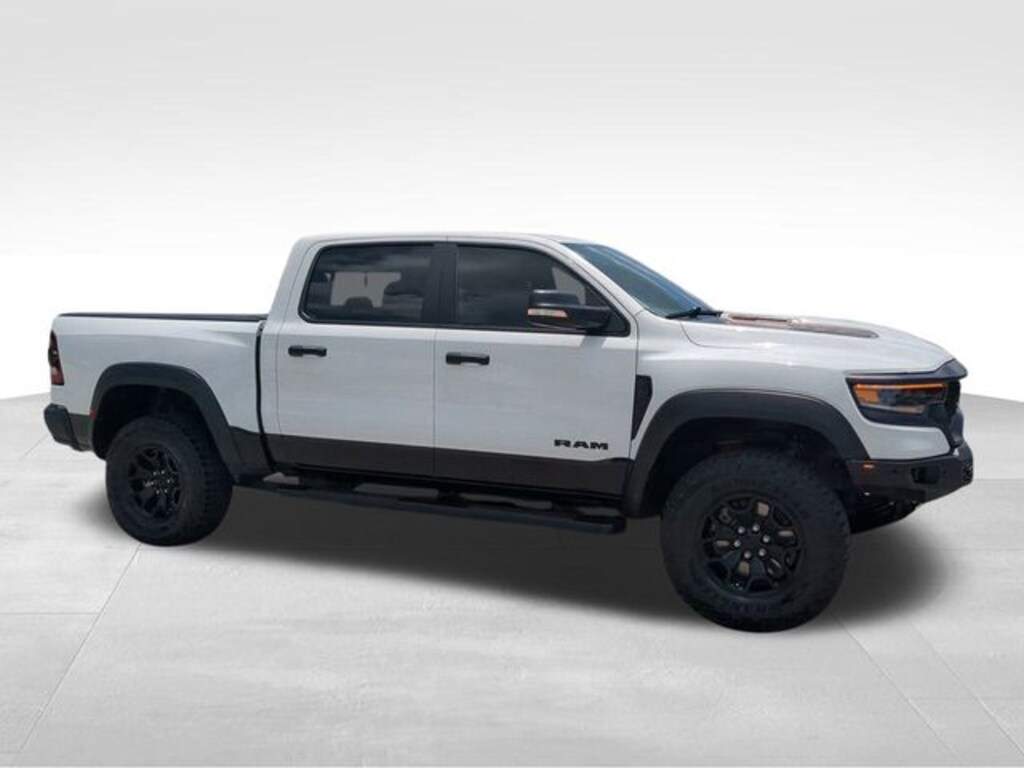This 2022 Ram 1500 TRX in Bright White Clearcoat features: 4D Crew Cab, 6.2L Supercharged HEMI V8 SRT, 8-Speed Automatic, 4WD, **LOCAL TRADE**, 10 Speakers, 12" LCD Productivity Touchscreen, 4-Wheel Disc Brakes, ABS brakes, Adaptive suspension, AM/FM radio: SiriusXM with 360L, Android Auto, Apple Carplay, Apple CarPlay/Android Auto, Auto High-beam Headlights, Auto LED Headlights, Auto-dimming door mirrors, Auto-dimming Rear-View mirror, Backup Camera, Black Exterior Mirrors, Bluetooth w/ Audio Streaming, Brake assist, Compass, Delay-off headlights, Electronic Stability Control, Exterior Mirrors Courtesy Lamps, Exterior Mirrors w/Heating Element, Exterior Mirrors w/Supplemental Signals, Front Bucket Seats, Front Center Armrest w/Storage, Front fog lights, Front Pedestrian Braking, Front Seat Back Map Pockets, Full Speed Auto Collision Warning Plus, Fully automatic headlights, Heated door mirrors, Illuminated entry, Leather Shift Knob, Leather steering wheel, LED Foglights, LED Projector Headlights, Low tire pressure warning, Navigation System, Outside temperature display, Overhead console, ParkView Rear Back-Up Camera, Performance Handling Package, Performance Package, Power door mirrors, Power driver seat, Power Mirror Package, Power Package, Power Sliding Rear Window, Power-Folding Mirrors, Preferred Equipment Package, Push Button Start, Quick Order Package 29Y, Radio data system, Radio: Uconnect 5 Nav w/12.0" Display, Rear 60/40 Folding Seat, Rear seat center armrest, Rear step bumper, Remote keyless entry, Remote Start, Security system, Speed control, Split folding rear seat, Steering wheel mounted audio controls, Telescoping steering wheel, Tilt steering wheel, Tow Package, Traction control, Trailer Package, Trip computer, Turn signal indicator mirrors, Variably intermittent wipers, Wheels: 18" x 9" Black Paint/Polish Aluminum.