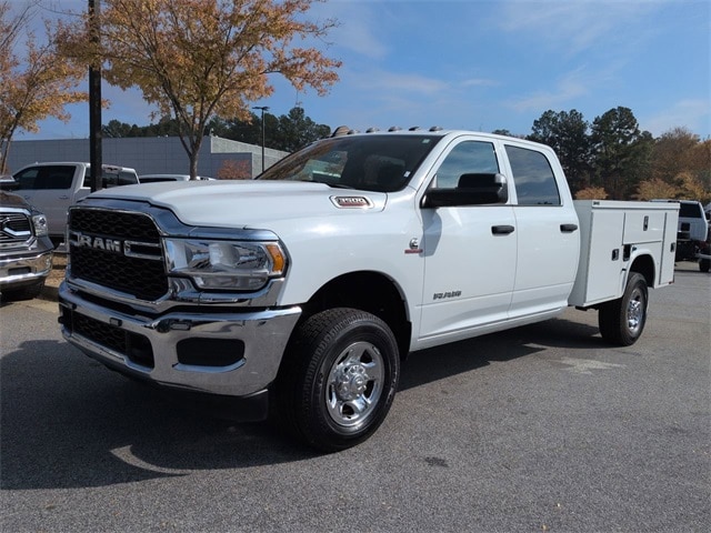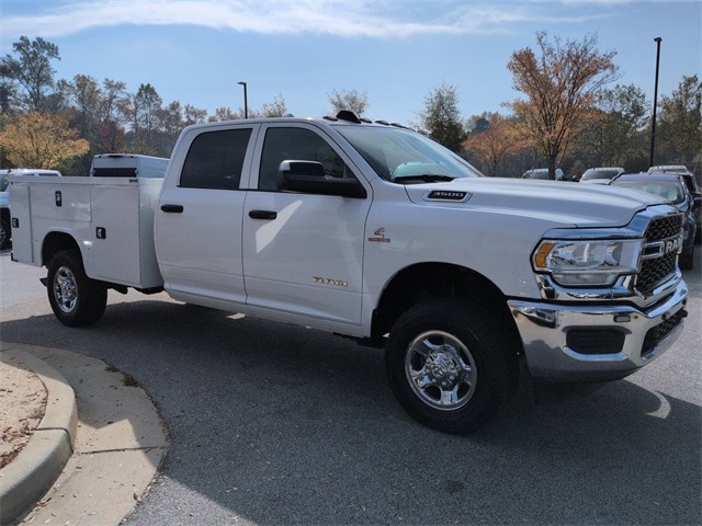 This 2022 Ram 3500 Tradesman in Bright White Clearcoat features: 4D Crew Cab, Cummins 6.7L I6 Turbodiesel, 6-Speed Automatic, 4WD, 2 Way Rear Headrest Seat, 4 Way Front Headrests, 4-Wheel Disc Brakes, 40/20/40 Split Bench Seat, 4G LTE Wi-Fi Hot Spot, 4G WiFi Hotspot Telematics, 50 Gallon Fuel Tank, 6 Speakers, 8.4" Touchscreen Display, ABS brakes, Active Noise Control System, All R1 Low Radios, All Radio Equipped Vehicles, Android Auto, Apple CarPlay, Apple Carplay, Backup Camera, Bluetooth Handsfree Phone & Audio, Bluetooth w/ Audio Streaming, Brake assist, Bright Front Bumper, Bright Rear Bumper, Bright Wheel Skins, Carpet Floor Covering, Center Hub, Chrome Appearance Group, Chrome Grille Surround, Cloth 40/20/40 Bench Seat, Cluster 3.5" TFT Color Display, Cluster 7.0" TFT Color Display, Connectivity - US/Canada, Delay-off headlights, Electronic Stability Control, Electronically Controlled Throttle, Emergency communication system: SiriusXM Guardian, For Details Visit DriveUconnect.com, Front Armrest w/Cupholders, Front Center Armrest w/Storage, Fully automatic headlights, Global Telematics Box Module (TBM), Google Android Auto, GPS Antenna Input, Heated door mirrors, Hill Start Assist, Illuminated entry, Integrated Center Stack Radio, Integrated Voice Command w/Bluetooth, Low tire pressure warning, Manual Adjust 4-Way Driver Seat, Manual Adjust 4-Way Front Passenger Seat, Matte Black Mesh w/Chrome Grille, MOPAR Spray In Bedliner, Outside temperature display, Overhead console, ParkView Rear Back-Up Camera, Power door mirrors, Power steering, Power windows, Preferred Equipment Package, Push Button Start, Quick Order Package 2HA Tradesman, Radio data system, Radio: Uconnect 5 w/8.4" Display, Rear Folding Seat, Rear Power Sliding Window, Rear step bumper, Rear Window Defroster, Selectable Tire Fill Alert, SiriusXM Satellite Radio, Speed control, Storage Tray, Tilt steering wheel, Tow Package, Traction control, Tradesman Level 2 Equipment Group, Trailer Brake Control, Trailer Light Check, Trailer Package, Turn signal indicator mirrors, Variably intermittent wipers, Wheels: 18" x 8.0" Steel Chrome Clad.