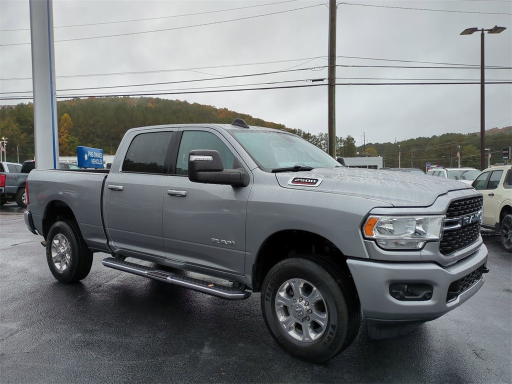 Billet Silver Metallic Clearcoat 2024 Ram 2500 Big Horn 4WD 4WD Big Horn 4WD 12" LCD Productivity Touchscreen, 4G WiFi Hotspot Telematics, Android Auto, Apple Carplay, Backup Camera, Bluetooth w/ Audio Streaming, Hill Start Assist, Power Mirror Package, Power Package, Preferred Equipment Package, Premium Audio Package, Premium Sound Package, Skid Plate Package, 4D Crew Cab, 6.4L V8, 8-Speed Automatic, 4WD, 12" Touchscreen Display, 2 Way Rear Headrest Seat, 2nd Row In Floor Storage Bins, 4 Way Front Headrests, 4-Wheel Disc Brakes, 40/20/40 Split Bench Seat, 4G LTE Wi-Fi Hot Spot, 8.4" Touchscreen Display, 9 Alpine Speakers w/Subwoofer, ABS brakes, Air Conditioning ATC w/Dual Zone Control, Alexa Built-In, All R1 High Radios, All Radio Equipped Vehicles, Apple CarPlay, Auto Power-Folding Mirrors, Bed Utility Group, Big Horn IP Badge, Black Exterior Mirrors, Black Interior Accents, Bluetooth Handsfree Phone & Audio, Body Color Door Handles, Body Color Grille Surround, Brake assist, Center Hub, Compass, Connected Travel & Traffic Services, Connectivity - US/Canada, Delay-off headlights, Disassociated Touchscreen Display, Dual Glove Boxes, Electronic Stability Control, Emergency communication system: SiriusXM Guardian, Exterior Mirrors Courtesy Lamps, Exterior Mirrors w/Heating Element, Exterior Mirrors w/Supplemental Signals, Foam Bottle Insert (Door Trim Panel), Footwell Courtesy Lamp, For Details, Visit DriveUconnect.com, For More Info, Call 800-643-2112, Forward & Reverse Utility Lights, Front Armrest w/Cupholders, Front Center Armrest w/Storage, Front Center Seat Cushion Storage, Front Fog Lamps, Front Seat Back Map Pockets, Fully automatic headlights, Global Telematics Box Module (TBM), Glove Box Lamp, Google Android Auto, GPS Antenna Input, GPS Navigation, HD Radio, Heated door mirrors, Illuminated entry, Integrated Center Stack Radio, Integrated Voice Command w/Bluetooth, Leather Wrapped Steering Wheel, LED Bed Lighting, Level 1 Equipment Group, Locking Lower Glove Box, Low tire pressure warning, Manual Adjust 4-Way Front Passenger Seat, Mirror Running Lights, MOPAR Deployable Bed Step, MOPAR Spray In Bedliner, Navigation System, Off-Road Information Pages, Outside temperature display, Overhead console, Painted Front Bumper, Painted Rear Bumper, Panic alarm, ParkSense Front/Rear Park Assist System, ParkView Rear Back-Up Camera, Power 2-Way Driver Lumbar Adjust, Power Adjust 8-Way Driver Seat, Power Adjust Mirrors, Power Adjustable Convex Aux Mirrors, Power door mirrors, Power Heated Fold Telescope Mirrors, Power steering, Power Telescoping Mirrors, Power windows, Premium Cloth 40/20/40 Bench Seat, Premium Cloth 40/20/40 Bench Seat (DISC), Protection Group, Quick Order Package 2GZ Big Horn, Radio data system, Radio: Uconnect 5 Nav w/12.0" Display, Radio: Uconnect 5 W w/8.4" Display (A62), Rear 60/40 Folding Seat, Rear Dome w/On/Off Switch Lamp, Rear Folding Seat, Rear step bumper, Remote keyless entry, Remote USB Port - Charge Only, Selectable Tire Fill Alert, SiriusXM Radio Service, SiriusXM Satellite Radio, SiriusXM w/360L, Speed control, Sport Appearance Package, Sport Decal, Steering Wheel Mounted Audio Controls, Storage Tray, Tilt steering wheel, Tip Start, Tow Hooks, Traction control, Trailer Tow Pages, Trip computer, Turn signal indicator mirrors, Variably intermittent wipers, Wheels: 18" x 8.0" Steel Chrome Clad.