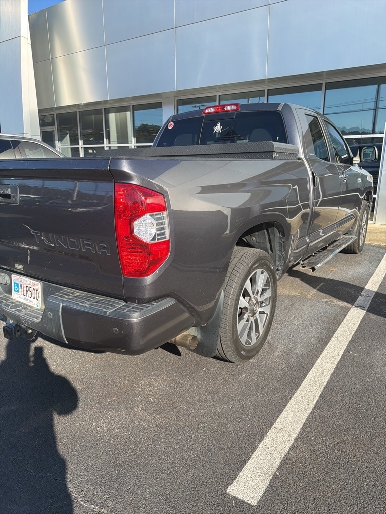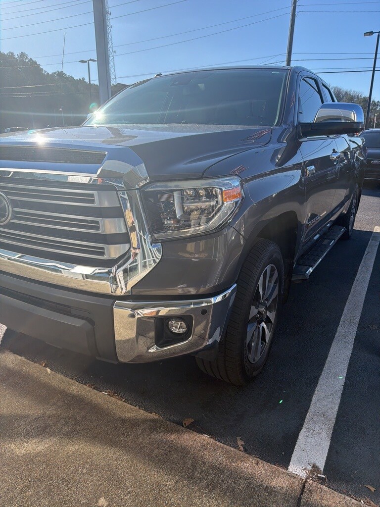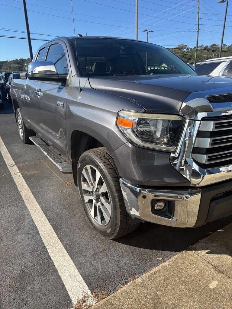 Magnetic Gray Metallic 2018 Toyota Tundra Limited 4WD 4WD Limited 4WD 7" Color Touchscreen, Adaptive Cruise Control, Backup Camera, Blind Spot Monitoring, Bluetooth w/ Audio Streaming, Front & Rear Park Assist, Front Pedestrian Braking, Lane Departure Warning, Leather Seats, Limited Package, Parking Sensors, Power Mirror Package, Power Package, Pre-Collision w/ Pedestrian Detection, Premium Audio Package, Premium Sound Package, Rear Cross Traffic Alert, Reverse Brake Assist, Reverse Sensing, Safety Package, Tow Package, Toyota Safety Sense, Trailer Package, 4D Double Cab, 5.7L 8-Cylinder SMPI DOHC, 6-Speed Automatic Electronic with Overdrive, 4WD, Graphite w/Leather Seat Trim (LB) or Leather Seat Trim, 4-Wheel Disc Brakes, 7 Speakers, ABS brakes, Active Cruise Control, Alloy wheels, AM/FM radio: SiriusXM, Auto High-beam Headlights, Auto-dimming Rear-View mirror, Automatic temperature control, Blind Spot Monitor w/Rear Cross Traffic Alert, Brake assist, Color-Keyed Rear Bumper, Compass, Delay-off headlights, Electronic Stability Control, Entune App Suite, Exterior Parking Camera Rear, Front & Rear Parking Assist Sonar, Front dual zone A/C, Front fog lights, Front wheel independent suspension, Fully automatic headlights, Garage door transmitter: HomeLink, Glass Breakage Sensors (GBS), Heated door mirrors, Heated Front Bucket Seats, Heated front seats, Illuminated entry, Illuminated Entry System, Leather Seat Trim, Limited Premium Package, Low tire pressure warning, Navigation System, Outside temperature display, Overhead console, Power driver seat, Power steering, Power windows, Power Windows w/Front Auto Up/Down, Radio data system, Radio: Entune AM/FM/HD w/CD Player, Remote keyless entry, SIRIUSXM Satellite Radio, Speed-sensing steering, Steering wheel mounted audio controls, Telescoping steering wheel, Tilt steering wheel, Traction control, Trip computer, Variably intermittent wipers, Wheels: 20" x 8J Split 5-Spoke Machined Alloy.