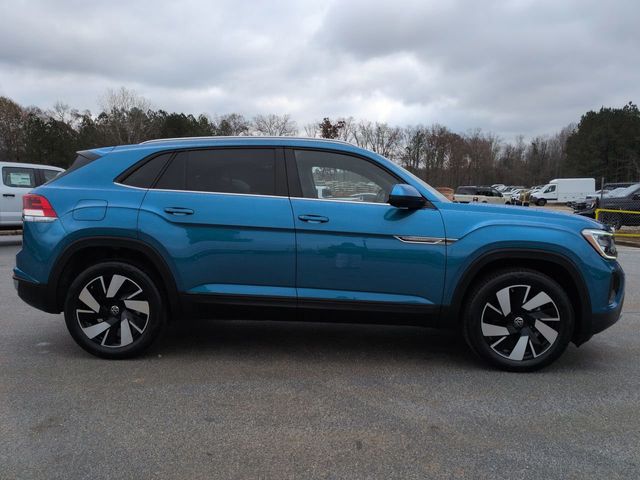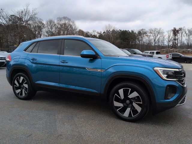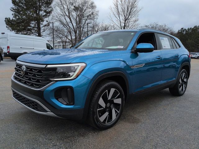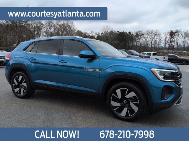 This 2024 Volkswagen Atlas Cross Sport 2.0T SE w/Technology in Kingfisher Blue Metallic features: Atlas Cross Sport 2.0T SE w/Technology (A8) AWD, 4D Sport Utility, 2.0L TSI, 8-Speed Automatic with Tiptronic, AWD, **LOCAL TRADE**, 10.2" Digital Driver Cluster, 12" LCD Productivity Touchscreen, 4-Wheel Disc Brakes, 4-Wheel Independent Suspension, ABS brakes, Adaptive Cruise Control, AM/FM radio: SiriusXM with 360L, Auto Emergency Braking, Auto LED Headlights, Auto-dimming Rear-View mirror, Automatic temperature control, Backup Camera, Blind Spot Monitoring, Brake assist, Cold Weather Package, Compass, Delay-off headlights, Electronic Stability Control, Emergency communication system: VW Car-Net Safe & Secure 5-year, Exterior Parking Camera Rear, Four wheel independent suspension, Foward Collison Alert, Front & Rear Park Assist, Front Center Armrest, Front dual zone A/C, Front fog lights, Front Pedestrian Braking, Fully automatic headlights, Heated & Actively Ventilated Front Seats, Heated door mirrors, Heated front seats, Heated steering wheel, Illuminated entry, Lane Keeping System, Low tire pressure warning, Outside temperature display, Overhead console, Panic alarm, Parking Sensors, Perforated V-Tex Leatherette Seating Surfaces, Post Collision Braking, Power door mirrors, Power driver seat, Power Liftgate, Power Mirror Package, Power Package, Power steering, Power windows, Push Button Start, Radio: MIB3 Composition Media AM/FM/HD, Rain sensing wipers, Rear Cross Traffic Alert, Rear seat center armrest, Rear window wiper, Remote keyless entry, Remote Start, Reverse Brake Assist, Reverse Sensing, Safety Package, Security system, Speed control, Speed-sensing steering, Split folding rear seat, Spoiler, Steering wheel mounted audio controls, Telescoping steering wheel, Tilt steering wheel, Tow Package, Traction control, Trailer Package, Trip computer, Turn signal indicator mirrors, Ventilated front seats, Wheels: 20" Multi-Spoke Black Painted Alloy, Wireless Charging Pad.